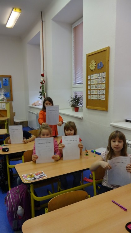 Ve třídě jsme zároveň vyhodnotili soutěž, ve které se děti získávaly v průběhu roku razítka za aktivitu, rychlost a správnost práce v jednotlivých hodinách nebo také za příkladné chování a pomoc druhým. Za to si mohly vybrat z připravených cen...