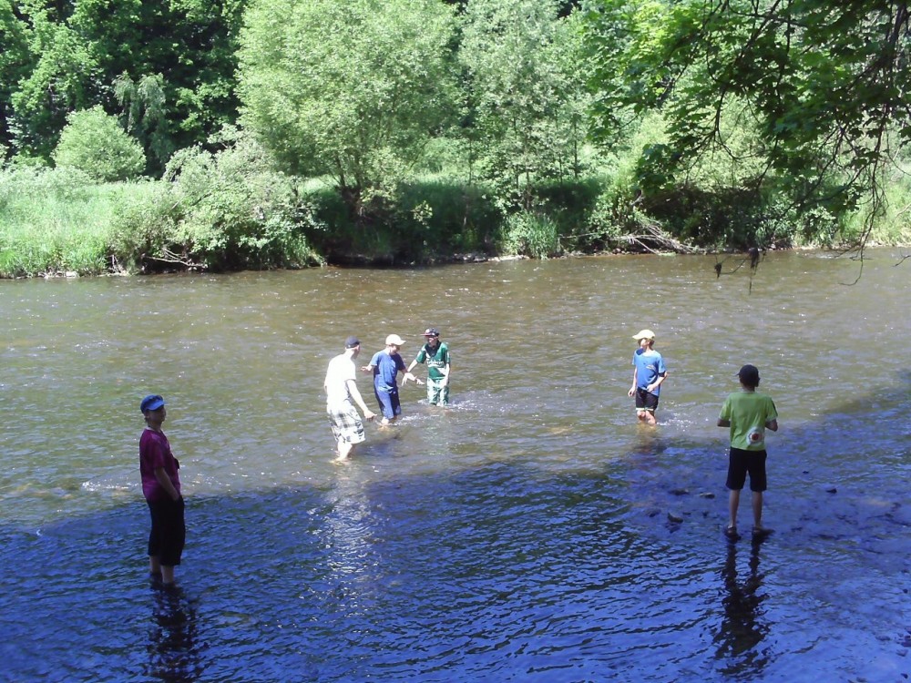 Vyšlo nám počasí. Na vodě byla sranda. Kluci za šestky všechny kropili a potápěli. V Krumlově jsme měli rozchod a šli jsme na pizzu. Večer jsme v kempu zapalovali oheň. Pán vedle ve stanu příšerně chrápal přes celý kemp a nemohl jsem usnout. Petr Schäffer