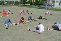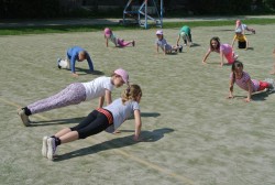 Dnes jsme měli tělocvik na venkovním hřišti - a moc jsme si ho užili. Nejdřív jsme se honili, hráli jsme čárovku a Čáp ztratil čepičku. Po rozcvičce jsme hráli ruční fotbal, zaskákali švihadlovou abecedu, zahráli Na jelena, probíhali roztočeným švihadlem. Na závěr jsme si zaběhali.