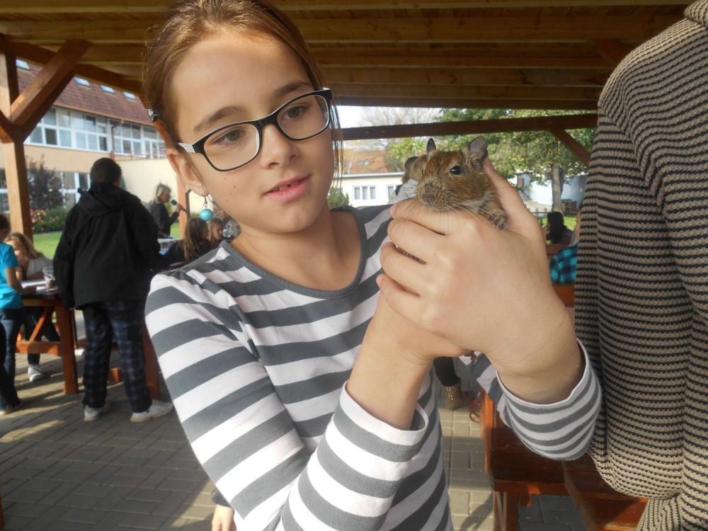Žáci 6. a 7. třídy si s sebou přivedli své zvířecí mazlíčky, které nám všem představili. Zvířátka to byla velmi rozličná, ale nejpočetnější skupinu tvořily různé rasy pejsků.