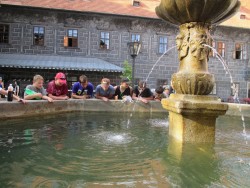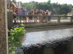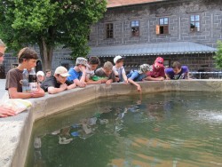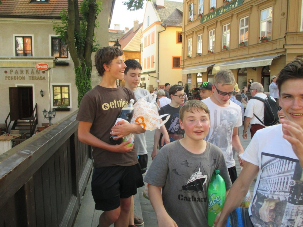 Druhý den dopoledne jsme pokračovali dalším úsekem, tentokrát asi dvacetikilometrovým, který nás dovedl z Rožmberku do Českého Krumlova. Opět jsme postavili stany a vydali se na prohlídku historického města a části zámku, které jsou zapsány na seznamu památek UNESCO. Navštívíli jsme také Zámeckou zahradu, kde se nachází hodně diskutované divadlo s otáčivým hledištěm. Jedná se o docela unikátní záležitost, takováto otáčivá hlediště jsou v naší republice pouze dvě, toto a menší v Týně nad Vltavou.