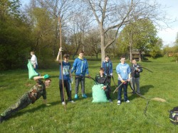 My, 8. třída, jsme uklízeli areál Pod kaštany, les Weigl a černou skládku za firmami.