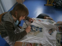 14. 6. 2015 Děti v 1.oddělení si pomalovaly trička s pomocí šablon a barev na textil. 16 / 6 / 2015 VS