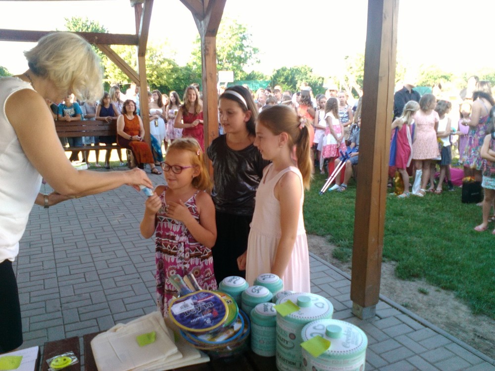 Dnes jsme se dočkali vytouženého dne, po kterém budou následovat dva měsíce volna a odpočinku. Společné hodnocení školního roku 2015/2016 proběhlo v altánu budovy ZŠ Benešova za přítomnosti paní ředitelky, paní zástupkyně a také pana starosty Ing.Josefa Šišky a paní místostarostky Ing.Hany Chybíkové. Paní zástupkyně Mgr.Jana Havlíčková spolu s paní ředitelkou Mgr.Kateřinou Koubkovou předávaly ceny jednotlivým žákům, kteří byli úspěšní v soutěžích a kteří reprezentovali naši školu v nejrůznějších společenských akcích.Mezi nimi byly i některé žákyně naší třídy. Nato jsme se vydali s paní učitelkou do třídy do budovy na Komenské ulici, kde jsme si zhodnotili práci naší třídy i jednotlivých žáků za celý školní rok, dostali krásná vysvědčení a hurááá na prázdniny.