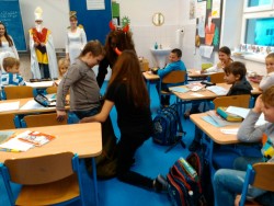 Dnes nás navštívili Mikuláš, andělé a čerti, kteří si  odnesli v pytli aspoň jednoho žáka do pekla. Ale vykoupili jsme ho písničkou o čertech, proto nám ho vrátili. Ten však musel dát slib, že už se polepší a bude zlobit jen v nejnutnějším případě. Mikuláš s anděly nám rozdali nadílku, na které jsme si hned o přestávce pochutnávali.