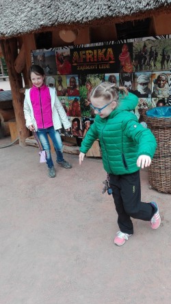 Děti si cestou, kdy plnily úkoly z listu, prohlédly surikaty, lemury, šimpanze, žirafy, zebry, plameňáky, velbloudy aa mnoho dalších. V cíli, kterým byla Africká vesnice, jsme se po náročném výšlapu občerstvili, děti odevzdaly ke kontrole pracovní listy a měli jsme také nečekanou návštěvu - páva, který se před námi předváděl v celé své kráse. Poslední zastávkou před zpáteční cestou byl stánek se suvenýry.
