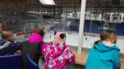 Po tom, co jsme zkušeně zvládli trénink, přišla občerstvovací pauza, po které následovala prohlídka zázemí celé DRFG Areny. Podívali jsme se do VIP prostor, do studia pro přenos a komentování zápasů, podívali jsme se na trénink juniorů ze skyboxu, navštívili jsme i skybox majitelů arény a očkem nakoukli do šaten A týmu Komety. Dál než k hokejkám jsme se ale nedostali, protože tým se zrovna v šatně připravoval na trénink :-) Poté, co nás za šaten vyhnala "vůně" tak typická pro zázemí šaten hokejistů byl čas, abychom se rozloučili s paní Hoffovou, marketingovou manažerkou, která se nám celé dopoledne ochotně věnovala a provázela nás.