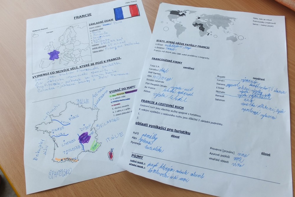 Tento den jsme strávili oslavou Dne jazyků. Celým dnem nás prováděla francoužština, se kterou jsme se postupně seznamovali. Nejdříve jsme se podívali na video o Francii a Paříži, ale protože francouzsky se nemluví pouze ve Francii, ale i v jiných státech, tak jsme se podívali i na část videa o Kanadě a Francouzské Polynésiii. Zjistili jsme tak, že francouzsky mluvící země mohou být velmi odlišné. To nás přivedlo k otázce, z jakého důvodu se v těchto zemích mluví francouzsky. Poslechli jsme si také, jak se francouzsky vysloví některá slovíčka z prostředí školy. Druhou hodinu jsme se vydali do počítačové učebny zjistit více informací o Francii. Veškeré informace jsme si zapsali do pracovních listů, které jsme si později společně prošli. Závěr dnešního dne jsme věnovali tvorbě posteru na téma "Škola". Rozdělili jsme se do skupin podle toho, jakou místnost ve škole jsme chtěli kreslit. Místnosti a věcí v nich jsme popsali francouzskými slovíčky. Díky poslechu v první hodině jsme si uvědomili, že francoužština se jinak čte a jinak píše. Celý den jsme si užili a těšíme se na další Den jazyků.