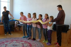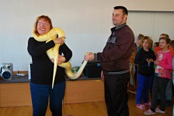Dnes jsme se do školy moc těšili, čekalo nás vystoupení Dua Eden.Rodiče našeho spolužáka Enriqua nám předvedli velice hezké představení.Kdo by nebyl zvědavý na cvičené opičky a pudlíky? Z hadů jsme samozřejmě měli respekt, ale nakonec jsme se s jedním z nich i vyfotili.Přesvědčili jsme se, že hadí kůže není vůbec slizká a nikdo se nebál.