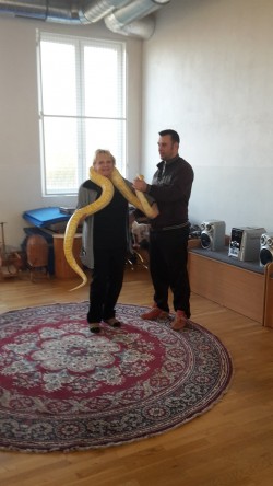 Dnes jsme měli možnost účastnit se vystoupení opiček, francouzských pudlíků a také hadů "škrtičů", kteří v nás vzbuzovali respekt, ale také zvědavost. Zjistili jsme, že jejich pochování je příjemné, jejich kůže není slizká, ale suchá. Tato zvířata cvičí a předvádí skupina Duo Eden, kterým děkujeme za uspořádání tohoto představení.