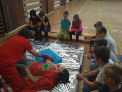 Naši školu navštívili zaměstnanci společnosti Český červený kříž a žákům pátých tříd přednášeli o první pomoci – základní informace k záchraně lidského života. Po shrnutí stručných teoretických informací jsme se přesunuli do sokolovny a nově nabitými informacemi (po praktické odborné ukázce) jsme se snažili zachránit život raněného. Na prvním stanovišti jsme vyzkoušeli stabilizovanou polohu a odnos raněného, na druhém jsme zastavovali tepenné krvácení ruky, na třetím jsme prováděli masáž srdce a na posledním jsme pomáhali zachraňovat lidský život po autonehodě. Dětem se praktická část velice líbila.