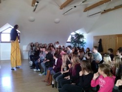 Pan senátor nezapřel svoji hereckou povahu, a jak můžete vidět ve fotogalerii, představil se dětem s ironií sobě vlastní jako „vysoce postavený muž“. A jelikož se takové chůdy nejen obtížně obouvají, ale i sundávají, tak absolvoval celou besedu „na vysoké noze“. Žáci pochopitelně něco podobného nečekali, ale brzy se osmělili a padlo mnoho zajímavých dotazů. Nenechte se však zmýlit prvním dojmem. Přestože byla beseda panem senátorem vedena v humorném duchu, jakmile došlo na závažné téma (v případě senátora Papouška například na jeho obor pomoc ohroženým dětem) beseda probíhala zcela seriózně.