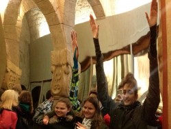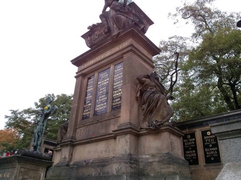 Naše první zastávka byla na Vyšehradě, místě vlády prvních Přemyslovců. Pod vedením poněkud nekonvenčního průvodce jsme vyrazili na průzkum celého vyšehradského areálu. Místo klasického výkladu jsme obdrželi baterky, MP3 se sluchátky a mohlo se začít. Nejprve jsme měli pocit, že jsme se ponořili do temných útrob hradu, ale vlastně jsme se pohybovali po skále, na níž byl hrad vystavěn, a na vlastní kůži pocítili význam stropních otvorů a průduchů. Netradiční pojetí prohlídky spočívalo v informacích, úkolech a instrukcích, jichž se nám individuálně dostávalo ze sluchátek od našeho průvodce a jež jsme plnili. Se zájmem jsme si prohlíželi originály soch z Karlova mostu, abychom je později mohli v reálu srovnat s jejich replikami, zjišťovali informace o lidech spjatých s tímto místem, identifikovali Myslbekova sousoší, obdivovali krásu i zajímavosti chrámu. Díky pěknému počasí jsme shlíželi na město pod námi a měli též pěkný výhled na protější Pražský hrad. Pomocí nápaditých pomůcek jsme mohli sledovat, jak v průběhu staletí měnil svou podobu, jak ho např. mohl vidět Karel IV. a jak ho vidíme nyní my. Nedílnou součástí tříhodinového programu bylo prozkoumání hřbitova slavných, tedy Slavína. Rozprchli jsme se po hřbitově a jali se vyhledávat místa odpočinku významných osobností, zapůjčeným náčiním čistili a upravovali nalezené hroby, neopomněli jsme ani zapálit svíčky. Takto prakticky pojatý výklad vzbuzoval u žáků zájem, tudíž je předpoklad, že si mnohé zapamatují.