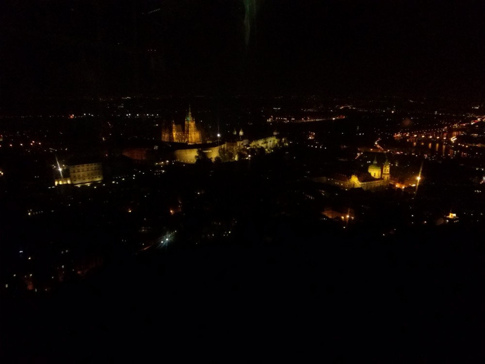 Protože se na nás začaly projevovat první stopy únavy a také rozdrásané paty v nevychozené obuvi přestávaly náš pochod činit radostným, zamířili jsme hbitým krokem na Hradčanské náměstí, kde jsme v kapucínském klášteře našli náš přechodný domov. Na jedné straně se nám nabízelo velmi jednoduché, prosté ubytování, na druhé straně skýtal pobyt v těchto prostorách neopakovatelný zážitek. Než jsme se zabydleli, ošetřili raněné a dostatečně se nasytili, venku se již zešeřilo a na další pochůzky jsme vyráželi již téměř za tmy. Ovšem bludiště a zejména Petřínská rozhledna zářily dodaleka. Téměř všichni si cvičně vyběhli až na její vrcholek, takže bylo jasné, že sil máme dost a že můžeme pokračovat do již turisty opuštěného a ztichlého areálu Pražského hradu. Nasvícený chrám sv. Víta působil impozantně, byl to mimořádný zážitek.