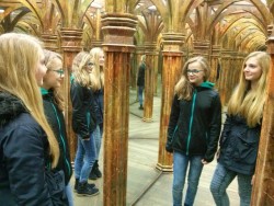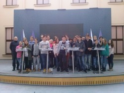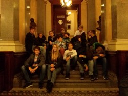 Po krátkém odpočinku jsme se přemístili do Národního divadla. Zde jsme se už bohužel již museli pohybovat organizovaně, i když volný pohyb po budově by měl nepochybně větší ohlas. Opět jsme sestoupili do sklepení. Na obnažený základní kámen z Řípu jsme sice nepoklepali, ale se zájmem jsme si prohlédli i ostatními obelisky přivezené z významných míst naší země. Zajímavé, ale řekla bych, že opravdu se nám dech zatajil, až jsme se usadili v horní části hlediště. Historie tohoto místa, jeho zvláštní atmosféra na nás dýchala ze všech stran. Před očima NÁROD SOBĚ, pak nádherné Ženíškovy stropní malby a obrovský lustr s tisíci žárovkami jakoby na dosah ruky nás nenechaly chladnými a všichni jsme tak trochu podlehli kouzlu tohoto místa.