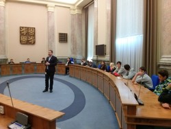 Občerstveni tímto nevšedním zážitkem jsme poté sestupovali po kamenném dláždění dolů, do probouzejícího se města. A když se po Malé Straně rozezněla loretánská zvonkohra, čekala jsem, kdy z domu U Dvou slunců vyběhne malý Jan Neruda, nebo se alespoň objeví postavy jeho povídek. Nic takového se samozřejmě nestalo, město žilo svým tempem, lidé pospíchali do práce a kavárny čekaly na své první hosty. My jsme směřovali k Valdštejnskému paláci. Opět jsme žasli, tentokrát nad bohatstvím a okázalostí budovy i sálů, jimiž jsme procházeli. Nakonec jsme zasedli do kdysi velkolepé konírny, dnes jednací síně Senátu ČR. Poté jsme se přemístili do nedaleké Strakovy akademie, sídla vlády. Tato svěží, o dvě stě let mladší novorenesanční budova na nás zapůsobila milým dojmem, zvláště když jsme v tiskovém centru postáli před řečnickými pultíky našich vládních představitelů, či když jsme usedli přímo na jejich místa v zasedacím sále.