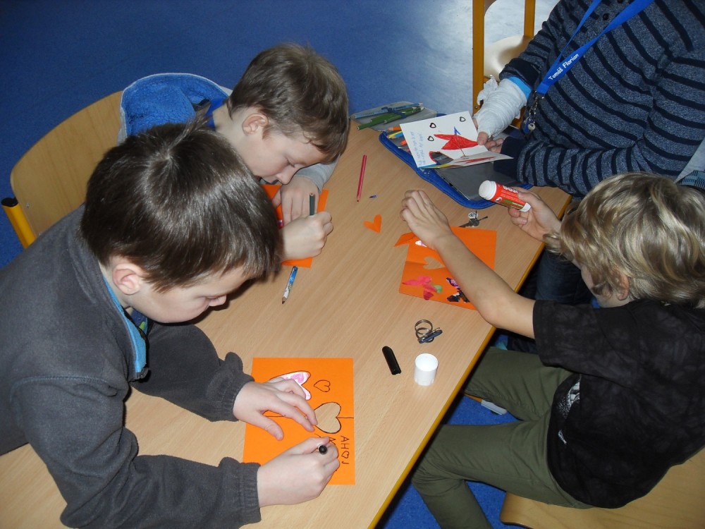 14. 2. 2017 2.oddělení v únoru - pravidelná návštěva knihovny - malujeme Hasíka na formát A3, A1 - keramická zvířátka - výroba Valentýnských přáníček 14 / 2 / 2017 KV