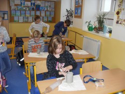 - z keramické hlíny stojánek na tužky, glazování výrobku