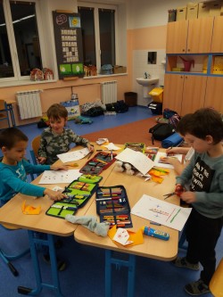 Zahráli jsme si Riskuj, kde jsme prověřili naše znalosti o knížce Povídání o pejskovi a kočičce a Noci s Andersenem. Na dobrou noc jsme přečetli další kapitolu O panence, která tence plakala, aby se nám dobře spalo. Ráno jsme si ke vstávání a snídani pustili další díl Jak si pejsek roztrhl kalhoty.