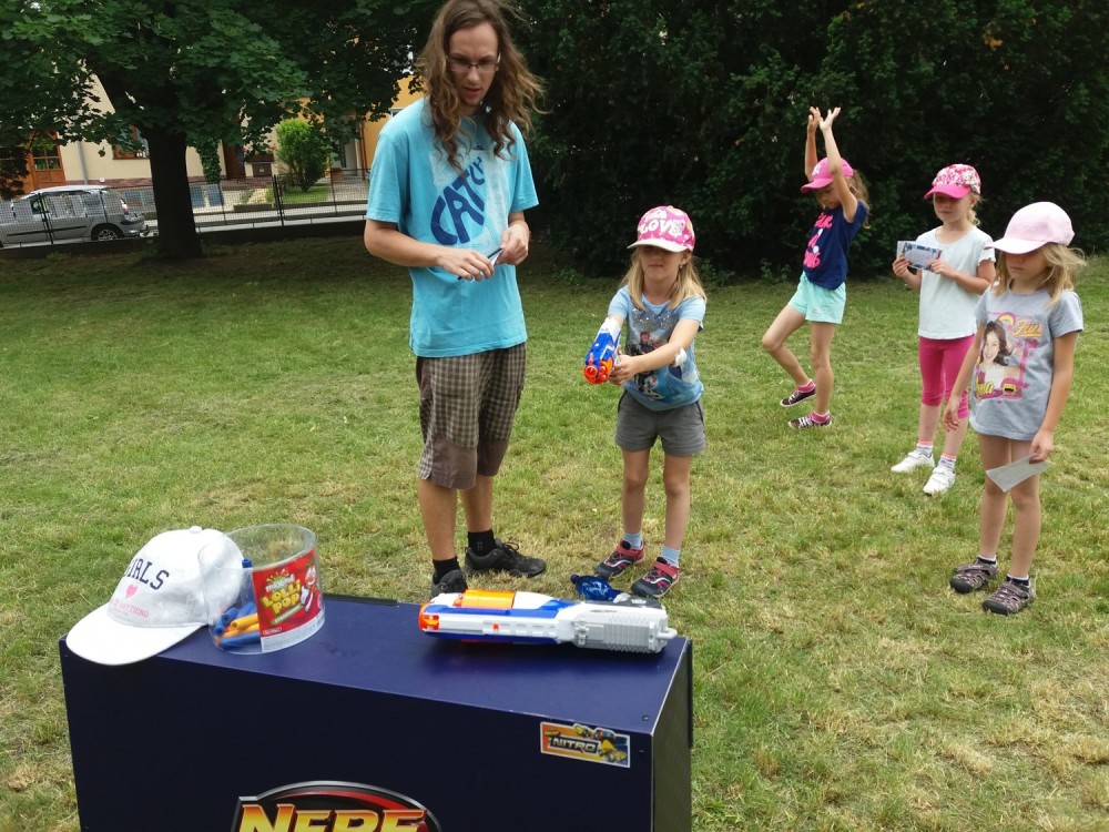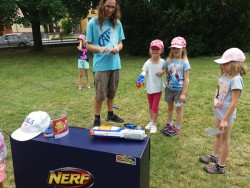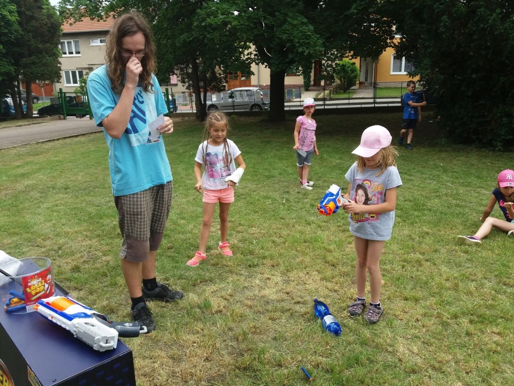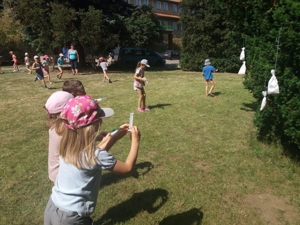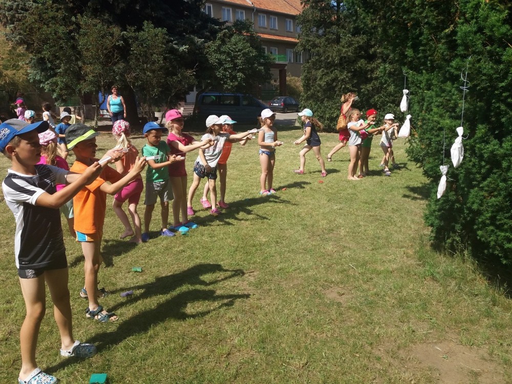 Ve čtvrtek byl den Popletených pohádek. Někdo strašně domotal všechny různé pohádky dohromady a my jsme je museli správně roztřídit - název pohádky, pohádkové postavy a známé věty z pohádek. Jelikož bylo celý den velké teplo, odpoledne jsme měli vodní hry. Jako večerní film jsme měli Mimi šéf.