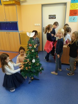 Vánoce se blíží a my jsme si třídu hezky vánočně vyzdobili. Po celou dobu adventního období jsem v hodinách výtvarné výchovy a pracovních činností malovali a vytvářili vánoční výzdobu třídy. Zkusili jsme spoustu nových výtvarných technik.V úterý jsme si ozdbobili stromeček a zazpívali koledy. Doufáme, že se Ježíškovi stromeček bude líbit a nadělí nám pod něj dárky.