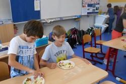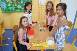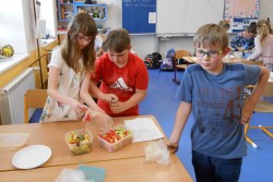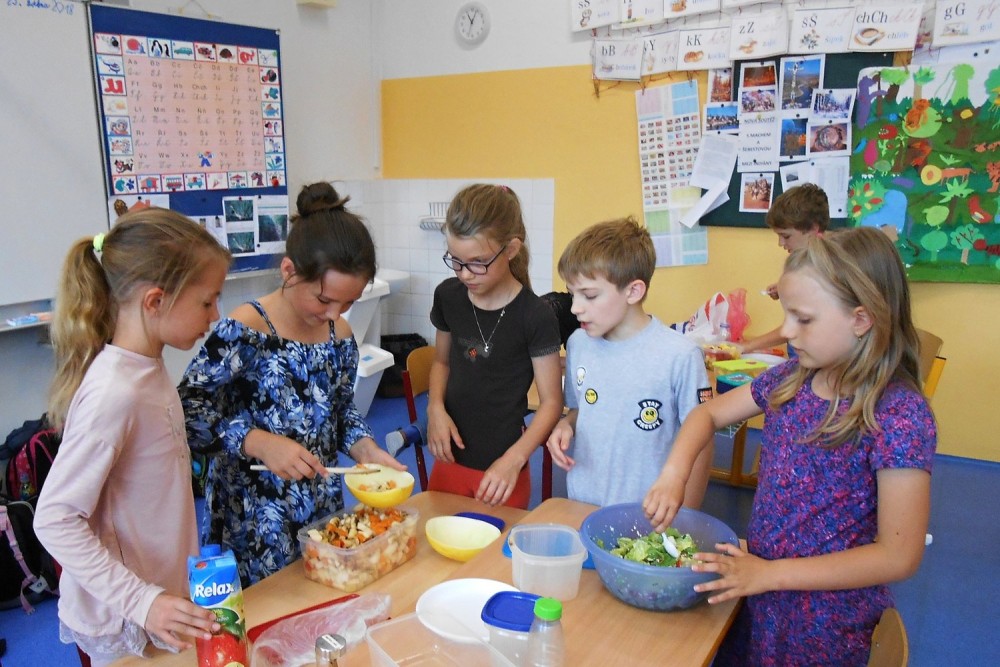 25. 5. 2018 Protože se v Prvouce učíme jak zdravě jíst, takovou zdravou svačinku jsme si dnes připravili.Zeleninové a ovocné saláty se moc povedly a všem velice chutnaly. 25 / 5 / 2018 JS