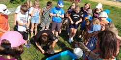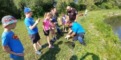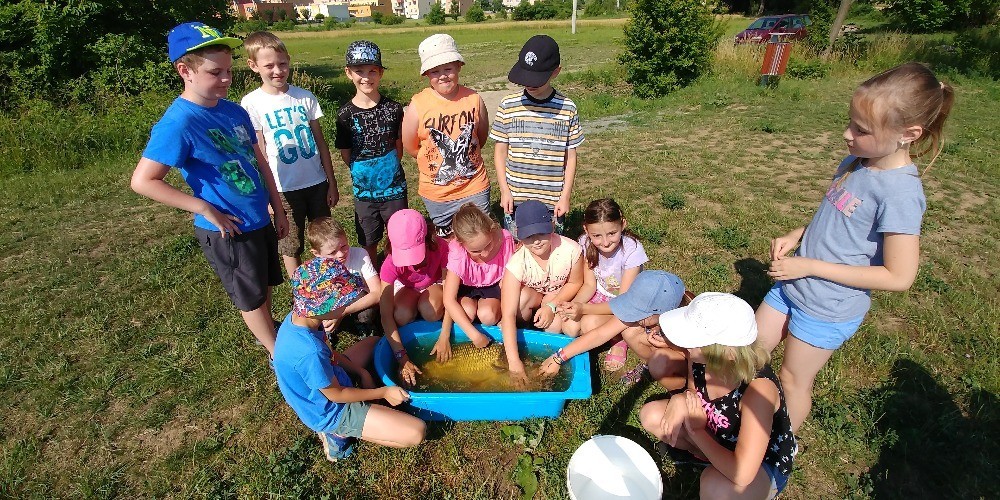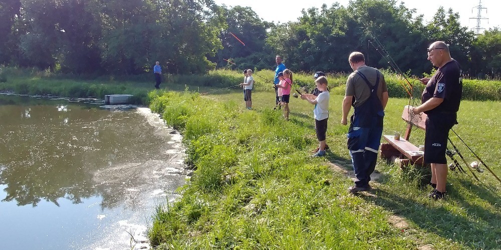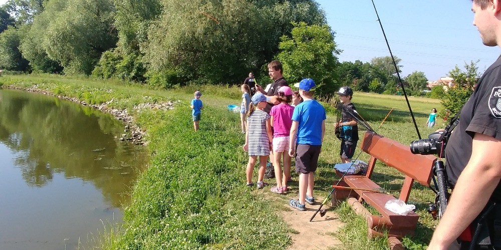 V pondělí jsme se vydali na „nově“ vybudovaný rybníček u náhonu řeky Svratky, abychom se naučili rybářskému umění. Strážníci městské policie Modřice pro nás připravili udice, těsto i návnadu. Nejprve nalákali ryby naházením krmiva do vody, potom nám do dvojic rozdali pruty s rybí pochoutkou. Vysvětlili, jak se správně nahazuje, jak vypadá plovák, když nám "bere" - no a už nezbývalo, než se obrnit trpělivostí a lovit. Po nekonečném čekání (asi 20 minut) se konečně zadařilo - z vody byla vytažena první malá rybička. Druhý a třetí úlovek už byl lepší - dva obrovští kapři! Pak už nás přišla vystřídat další třída, ale i tak jsme byli spokojení. Lov ryb se nám moc líbil, děkujeme městské policii za nádherný zážitek a doufáme, že si jej ještě někdy zopakujeme!