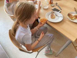 I když si žáci nevybrali úplně jednoduché pokrmy a příprava zabrala spoustu času, stihli jsme i jiné aktivity. Připravili jsme společně plochu pro fotokoutek na zahradní slavnost, což si vzala na starost talentovaná Terka W., společně jsme se pobavili několika hrami alespoň ve třídě, když už to venku nešlo a vše jsme korunovali populární schovávačkou v lehce potemnělé budově školy, abychom si ji užili tak, jak ji běžně neznáme.