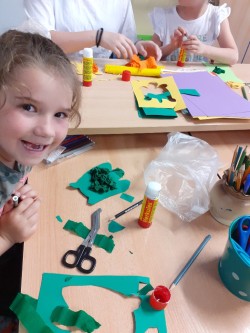23. 5. 2023 Naši družinu navštívila v rámci své praxe, studentka prvního ročníku I.Německého zemského gymnasia, základní školy a mateřské školy o.p.s., slečna Elena Studená, která s dětmi tvořila barevnou papírovou želvu. 23 / 5 / 2023 SkS