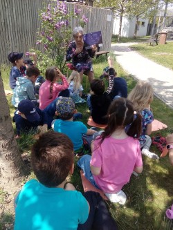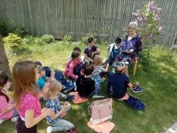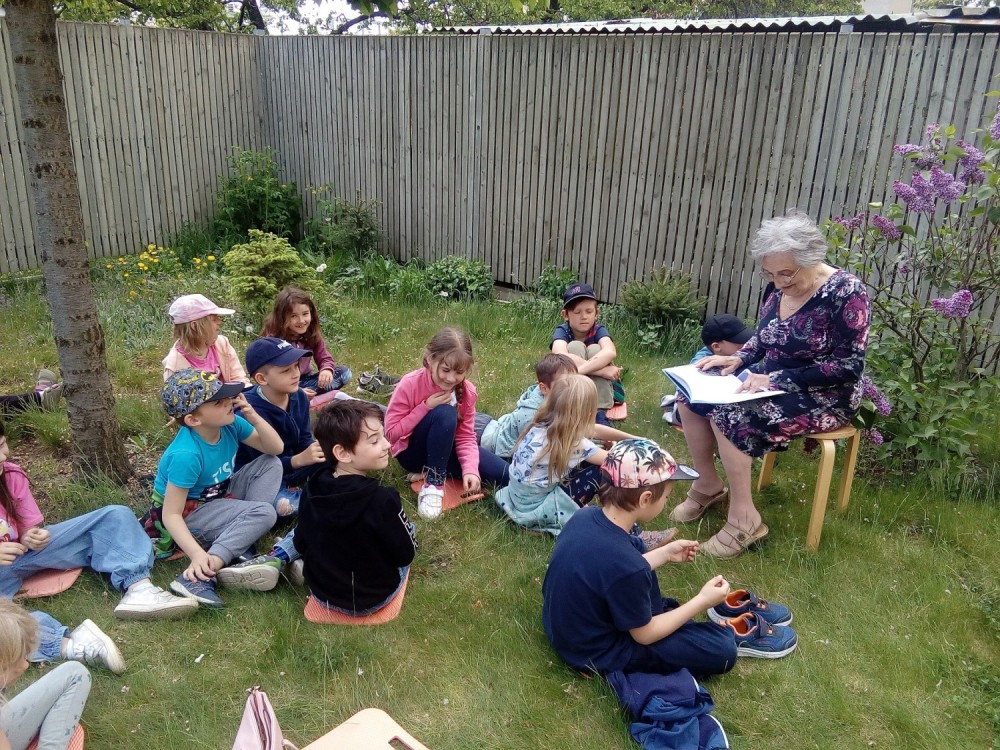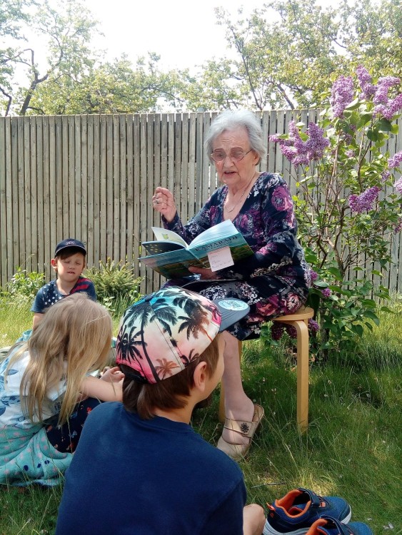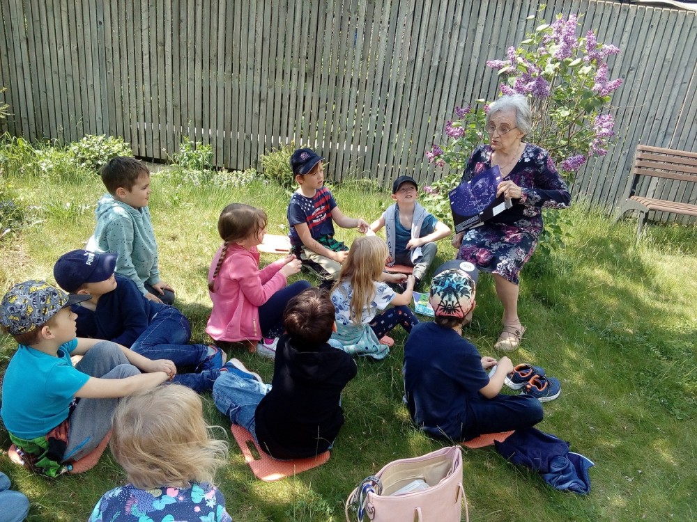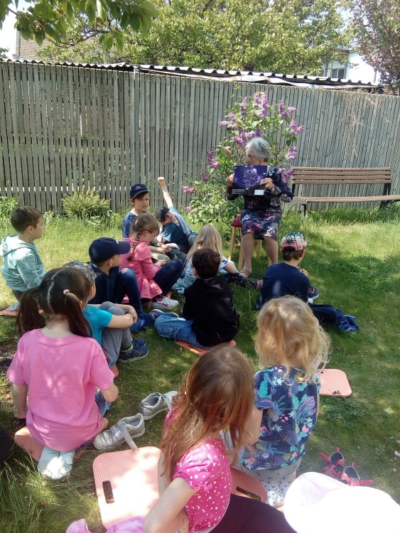 9. 5. 2022 Dnes školní družina navštívila domov seniorů. Paní Marie Brussova nám četla pohádku "O Měsíci " z knihy Kamarádi ze zahrádky od Jiřího Šandery. Čtení proběhlo venku, bylo moc pěkné a budeme se těšit na další pohádky od babiček. 9 / 5 / 2022 KV