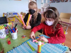 V dubnu jsme se věnovali tvoření z roliček a barevného papíru, procvičili jsme si