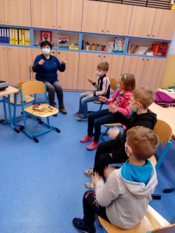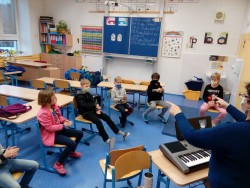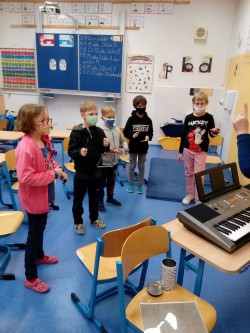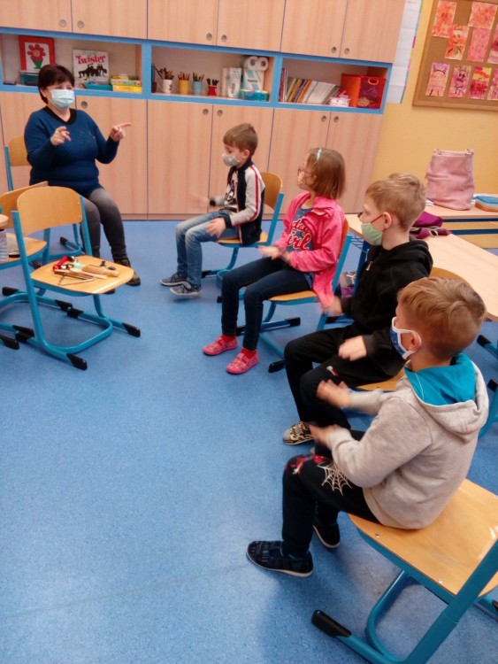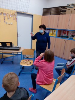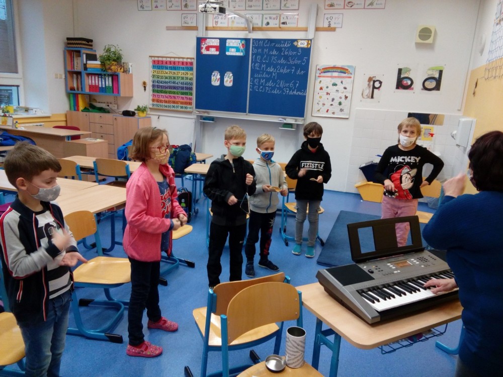 Čtvrté setkání bylo dle pravidel a hygienických předpisů s rozestupem i rouškou. Opakujeme známé písničky, říkáme slova, zahrané na klávesy paní Kafkovou. Většinu připravených melodií hravě poznáváme. Melodie dupeme, tleskáme, luskáme prsty, vše se někdy povede propojit. Máme rádi rytmizaci s Orffovy nástroji (bubínek, kastaněty, zvučná dřívka, triangl, štěrchadlo) i když některé názvy nástrojů si stále nepamatujeme. Budeme se těšit se na setkání v lednu.