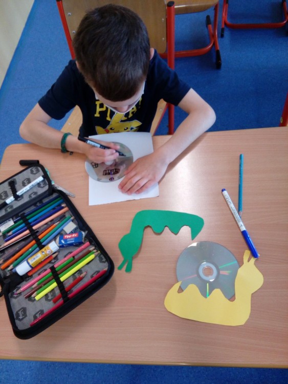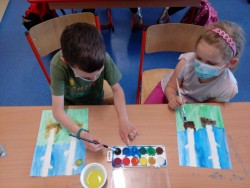 Čteme z knihy Co vyprávěla houpací síť, Jiří Šandera. Přípravná třída tvoří ve školní družině jarní téma. Pomocí vodovou varvou malujeme břízu, dotvořeno pomocí černého fixu. Procvičujeme motoriku stříháme šnečka, malujeme domeček. Na hřišti se učíme skákat přes švihadlo a chytat míč.