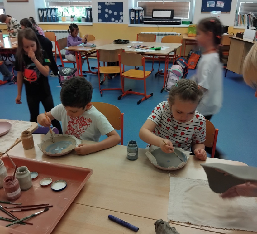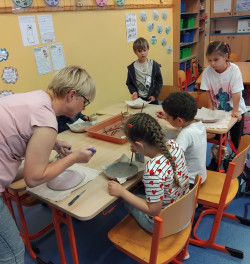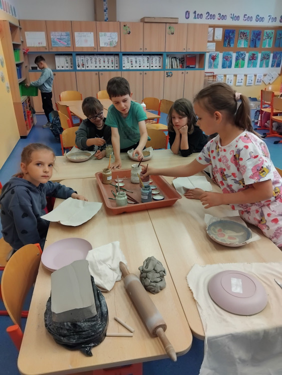 Keramický talířek zdobený engobou - 2.oddělení ŠD