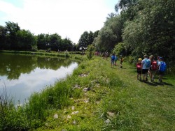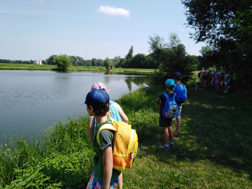 pozorovali skokana skřehotavého a želvu :-) Na druhém břehu ramene Svratky
