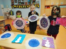 ledovému tvoření. Procvičovali jsme stříhání na sněhulácích, použili jsme