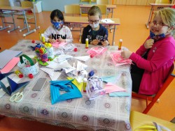 jsme vločku z barevných papírů a učili se skládat lotosové květy z ubrousků.