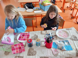 5. 6. 2025 Z kulatých papírových tácků tvoříme hodiny jako dekoraci nebo pomůcku, abychom se naučili správně určit čas. Ve tvoření nám pomáhaly studentky Agáta a Katka. Pracovali jsme s inkoustem, zmizíkem a ubrousky. 5 / 6 / 2025 BJ