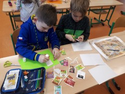 Vyrábíme podložky z tvrdého papíru, zdobíme čajovými sáčky a laminujeme, 4.odd., L.Š.