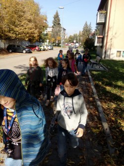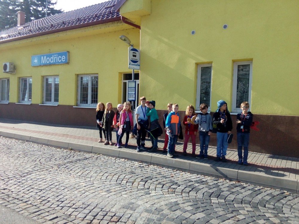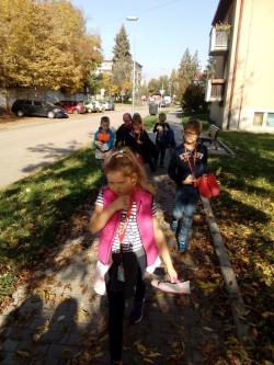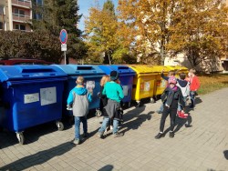 24. 10. 2019 podzimní práce na školním hřišti, návštěva nádraží, opakujeme kam patří různý odpad, procházka městem 24 / 10 / 2019 KV
