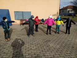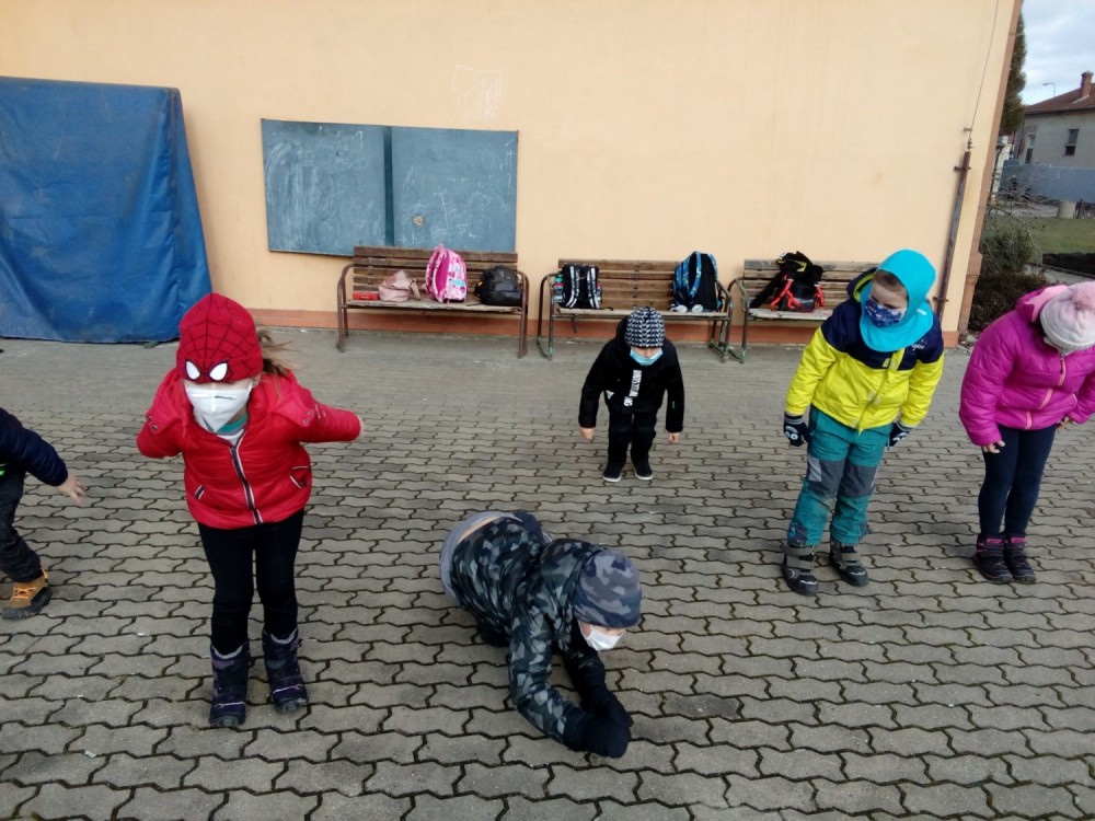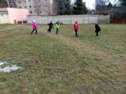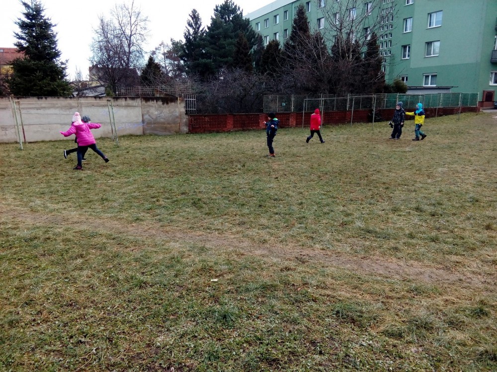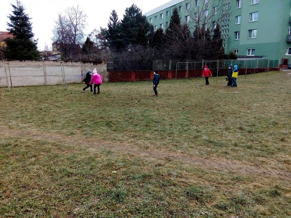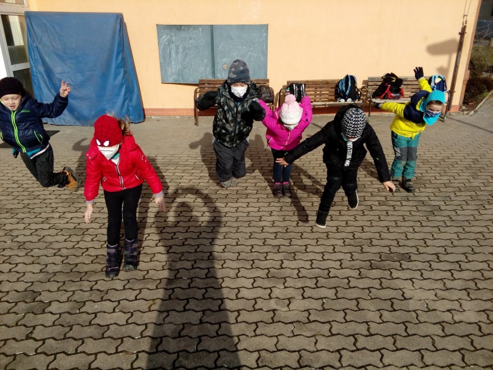 26. 1. 2021 ŠD Přípravná třída - po odpočinu, hrajeme pohybovou hru na opakování - před školou hra Domeček, hříbeček, skok žabáka - na hřišti bez herních prvků v lednu na zamrzlíka 26 / 1 / 2021 KV