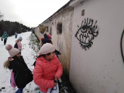 Cestou na staré fotbalové hřiště děti objevily graffiti v podobě oka,