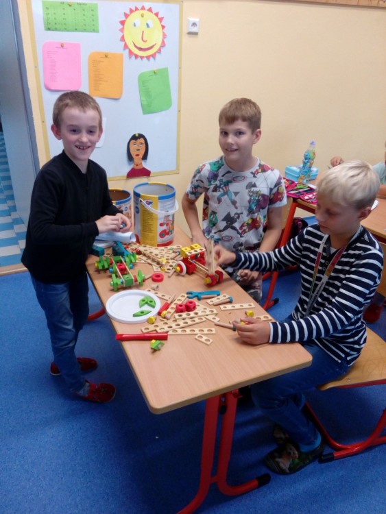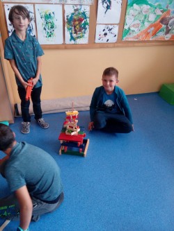 25. 9. 2019 Skládání dřevěných kostek, divalo o zvířátkách ze stavebnice, šroubované auta, míčové hry, skok z místa 3 / 10 / 2019 KV