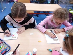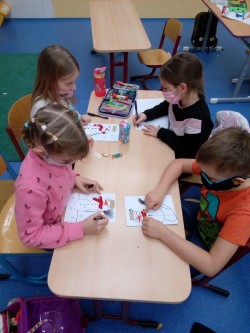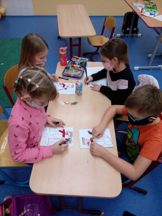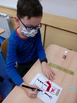 4.oddělení z 2.C tvoří přání s motivem Sněhuláka
