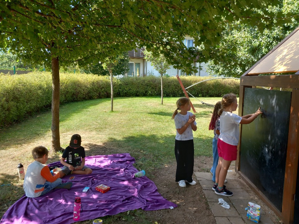 12. 9. 2025 Stále využíváme pěkného počasí k venkovním aktivitám, hrajeme malou kopanou, vybíjenou, na Prostředníka. V rámci poobědového klidu předvádíme pantomimou známé pohádkové hrdiny, oblíbený sport nebo zvířátko. 12 / 9 / 2025 BJ