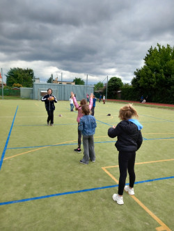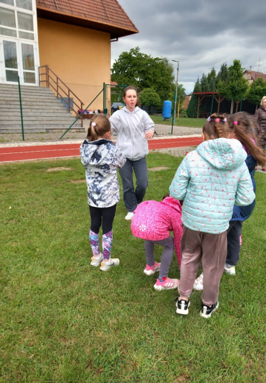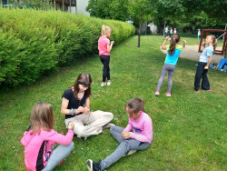 Koncem května byly v našem oddělení na pedagogické praxi dvě studentky, Agáta a Katka. Zasportovali jsme si s nimi na školním hřišti i zahradě. Hrály jsme vybíjenou, na Prostředníka a přetahovali jsme se s lanem. Společný čas jsme si s nimi moc hezky užili.