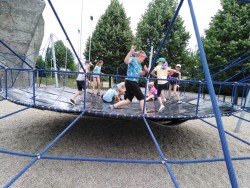 na hřišti podle připravených vět pantomimou předváděli různé situace