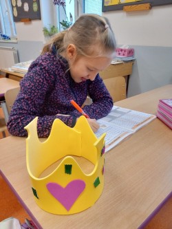 Ze zbytků pěnovky a vlnité lepenky tvoříme pomocí tavné pistole tříkrálové koruny. Rádi spolu hrajeme stolní hry, Piškvorky, kvarteta, Černého Petra. Naší oblíbenou stavebnicí je Lego, ze kterého skládáme auta, letadla, lodě a tím si procvičujeme jemnou motoriku.