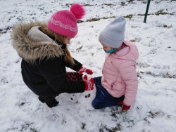 si tak sněhu plnými doušky, stavíme sněhuláky a jejich rodiny, koulujeme se