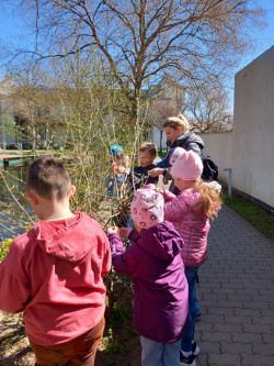 9. 5. 2025 Před Velikonocemi jsme vytvořili jarní dekorace a zavěsili je na větve keřů a vrbičky u jezírka PBDS seniorům a kolemjdoucím pro radost. A v rámci odpoledního klidu si chodíme k jezírku číst z knížky Krysáci jsou zase spolu. 9 / 5 / 2025 BJ